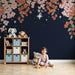 Erneuern Sie das Zimmer Ihres Babys in ein süßes Nest mit dieser Babyzimmer Tapete, die mit zarten Blumen und glitzernden Sternen verziert ist. Die sanften Farbtöne von Rosa und Rot vermischen sich harmonisch auf einem dunkelblauen Hintergrund und schaffen eine beruhigende und träumerische Atmosphäre.