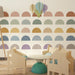 Babyzimmer Tapete | Sanfte bunte Halbkugeln auf hellem Hintergrund