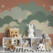 Verwandeln Sie das Zimmer Ihres Babys in ein gemütliches Nest mit dieser Babyzimmer Tapete mit Wolken- und Sternenmotiven. Die beruhigenden Grüntöne und Cremetöne der Wolken schweben sanft auf einem warmen Terrakotta-Hintergrund und schaffen eine ruhige und träumerische Atmosphäre.