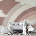 Babyzimmer Tapete | Weiche Wolken und pastellfarbener Regenbogen mit goldenen Glanzlichtern