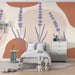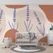 Gestalten Sie das Zimmer Ihres Babys mit dieser zarten Babyzimmer Tapete neu, die elegante Lavendelzweige auf einem Hintergrund aus organischen Formen hervorhebt. Die sanften Lavendeltöne und die Akzente in Terrakotta schaffen eine ruhige und warme Atmosphäre, ideal zum Schlafen und Träumen.
