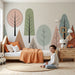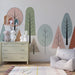 Babyzimmer Tapete | Grafischer Wald mit bunten Bäumen