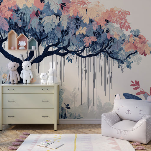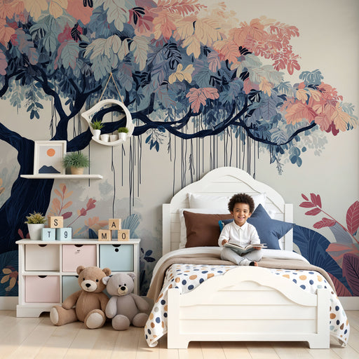 Kinderzimmer Tapete | Majestätischer Baum und tropische Vegetation