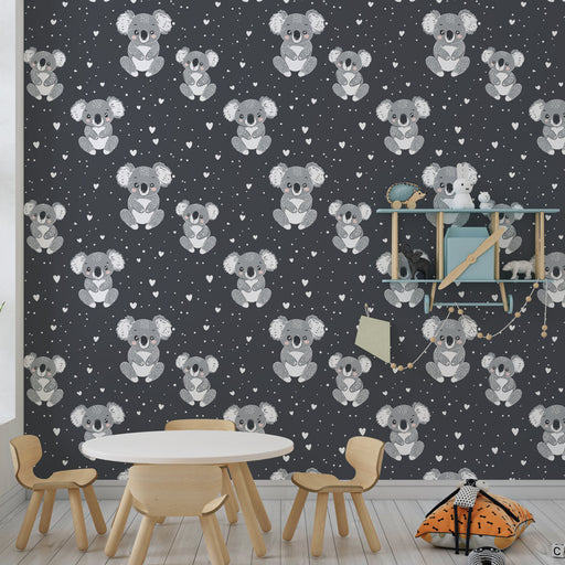 Vollständige Details anzeigenKinderzimmer Tapete mit Muster | Niedliche Koalas auf schwarzem Hintergrund