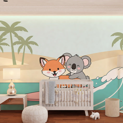 Kinderzimmer Tapete | Abenteuer am Strand mit einem Fuchs und einem Koala
