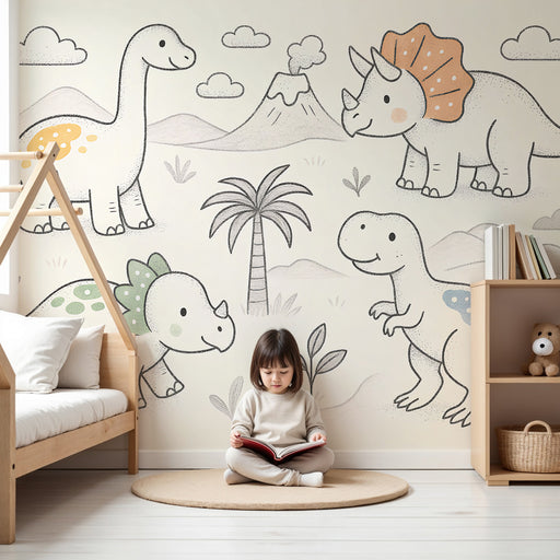 KidsWallTauchen Sie ein in die aufregende Welt der Dinosaurier mit dieser Tapete für Kinder, die Fantasie und Entdeckung verbindet. Ein entzückender Dinos...