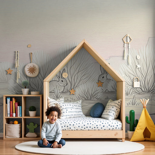 Kinderzimmer Tapete | Hasen in einer sanften und wüstenartigen Landschaft