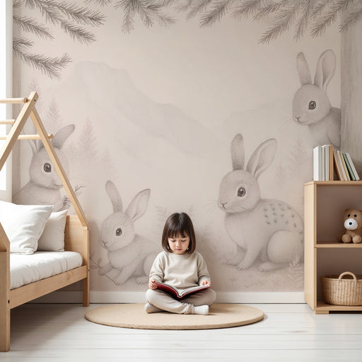 Vollständige Details anzeigenKinderzimmer Tapete | Hasen im friedlichen Wald