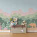 Babyzimmer Tapete | Bären und Pastellwald mit zartem Laubwerk