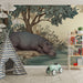 Babyzimmer Tapete | Friedlicher Nilpferd am Wasser umgeben von Grünzeug
