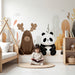 Verwandeln Sie das Zimmer Ihres Babys in eine Oase der Ruhe mit dieser Babyzimmer Tapete, die zwei entzückende Tiere zeigt. Ein sanftmütiger brauner Bär und ein schelmischer Panda lassen sich friedlich inmitten eines Waldes mit warmen Herbsttönen nieder. Die goldenen Blätter und organischen Formen schaffen eine beruhigende Atmosphäre, perfekt für die Träume Ihres Kleinen.