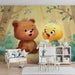 Babyzimmer Tapete | Niedliche Bären und Vögel in einem verzauberten Wald