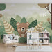 Babyzimmer Tapete | Niedlicher Bär versteckt im grünen Wald