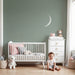 Die subtilen Grüntöne und das Weiß vermitteln Ruhe, während die Sterne einen Hauch von nächtlicher Magie hinzufügen. Dies bezaubernde Dekor ist perfekt, um die Nächte Ihres Kleinen zu beruhigen und einen friedlichen und erholsamen Schlaf zu fördern.