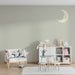 Die sanften und neutralen Farbtöne dieser Tapete verleihen dem Raum eine warme und gemütliche Note, die perfekt für den ruhigen Schlaf Ihres Kleinen ist. Jeder Stern leuchtet sanft und verleiht dem Raum eine magische Dimension, während der schlafende Mond ein Gefühl von Schutz und Ruhe vermittelt.