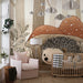 Bringen Sie Ihr Kind in eine bezaubernde Welt mit dieser Kinderzimmer Tapete, die einen niedlichen Igel zeigt, der friedlich unter großen Pilzen sitzt. Diese zarte, von der Natur inspirierte Illustration schafft eine beruhigende und magische Atmosphäre im gesamten Raum.