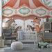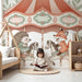 Tauchen Sie ein in eine magische Welt mit dieser Tapete für Kinder, die ein zauberhaftes Karussell zeigt. In der Mitte dieser Szene tanzt ein entzückender Igel in einem Kleid fröhlich neben einem lächelnden Fuchs, die beide auf charmanten hölzernen Pferden reiten. Dieses bezaubernde Dekor bringt einen Hauch von Fantasie in das Zimmer Ihres Kindes und regt seine Vorstellungskraft und Kreativität an.