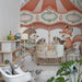 Die sanften Farbtöne von Rosa und Grün, kombiniert mit den zarten Mustern des Karussells, schaffen eine warme und einladende Atmosphäre. Jedes Detail, von den fröhlichen Gesichtern der tierischen Freunde bis zu den pastellfarbenen Verzierungen des Karussells, ist sorgfältig gestaltet, um kleine Träumer zu begeistern. Dieses Design bringt ein Gefühl von Freude und Staunen, das das Zimmer in einen spielerischen Spielplatz verwandeln wird.