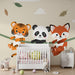 Tauchen Sie ein in eine lustige und lebendige Welt mit dieser Kinderzimmer Tapete, die drei entzückende Tiere zeigt. Ein verspielter Tiger, ein sanfter Panda und ein neugieriger Fuchs hängen an einem Seil und bringen eine Atmosphäre von Kameradschaft und Freude in das Zimmer Ihres Kindes.
