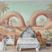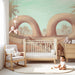 Die sanften Pastellfarben und die abgerundeten Formen der natürlichen Bögen verleihen dieser einzigartigen Wanddekoration eine imaginäre Note, die perfekt zur Welt der Kinder passt. Jedes Element, von den gewundenen Wegen bis hin zu den Kamelsilhouetten, ist darauf ausgelegt, Neugierde zu wecken und imaginäre Besuche in fernen Welten zu fördern.