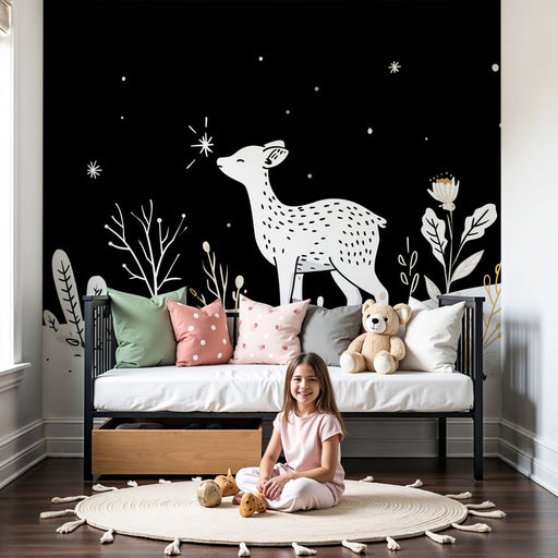 KidsWallΜετατρέψτε το δωμάτιο του μωρού σας σε έναν ήρεμο κόσμο με αυτό το ταπετσαρία βρεφικού δωματίου που απεικονίζει έναν απαλό ελάφι που στέκεται κάτω ...