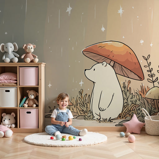 KidsWallΜετατρέψτε το δωμάτιο του μωρού σας σε μια παραμυθένια χώρα με αυτό το χαρτί τοίχου για μωρά που απεικονίζει ένα γλυκό αρκουδάκι κάτω από μια μαντα...