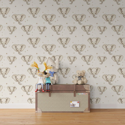 Χαριτωμένα ελέφαντες σε κρεμ απόχρωση ταπετσαρίας βρεφικού δωματίου
