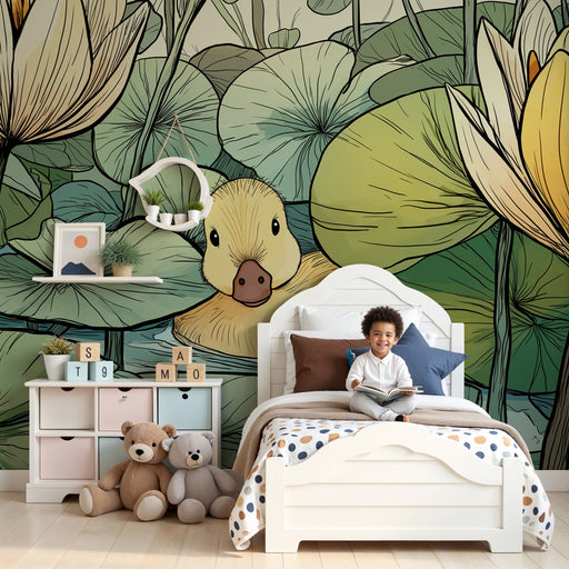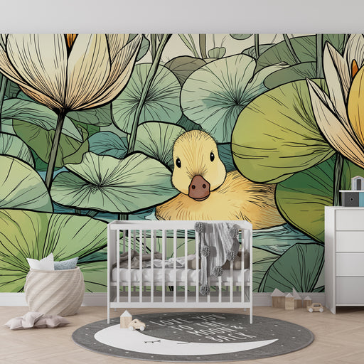 Χαρτί τοίχου για το δωμάτιο του μωρού | Πάπια στη μέση των νούφαρων