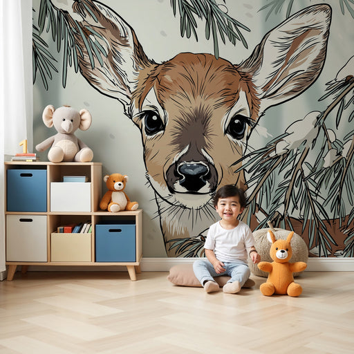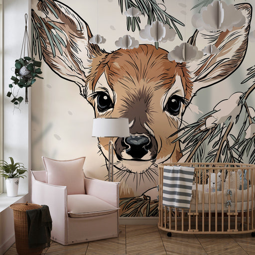 Χαρτί τοίχου δωματίου μωρού | Περίεργο ελάφι στην καρδιά του δάσους