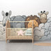Papel de parede quarto bebê | Χαριτωμένα ζώα σε μια συννεφιά γλυκιάς