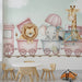 Το παστέλ φόντο και τα ελαφριά σύννεφα φέρνουν μια αίσθηση γαλήνης, κάνοντας αυτή την τοιχογραφία την τέλεια επιλογή για τον ιερό χώρο του μικρού σας. Οι λεπτομερείς λεπτομέρειες των ζώων, ζωγραφισμένες με φροντίδα, καθηλώνουν τη φαντασία και ενθαρρύνουν τα όνειρα περιπέτειας.
