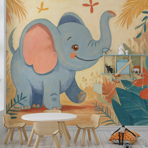 Εμφάνιση όλων των λεπτομερειώνΧαριτωμένο ταπετσαρία ελέφαντα | Ζεστή διακόσμηση για το παιδικό δωμάτιο