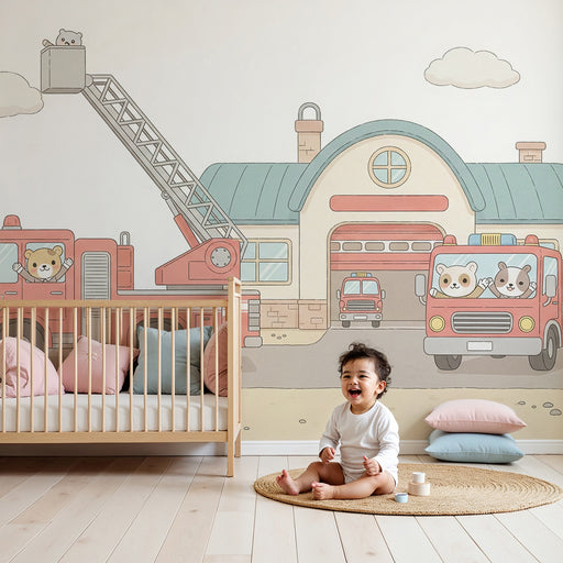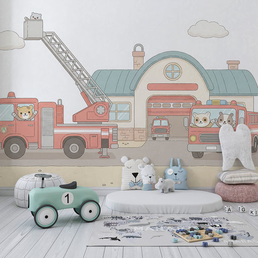 KidsWallΜετατρέψτε το δωμάτιο του παιδιού σας σε πραγματικό πυροσβεστικό σταθμό με αυτό το χαρούμενο χαρτί τοίχου για παιδιά. Στην καρδιά της εικόνας, ένα ...
