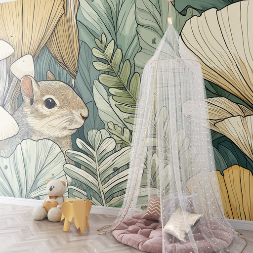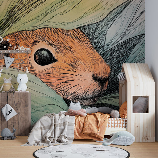 Εμφάνιση όλων των λεπτομερειώνΠαιδικό ταπετσαρία | Περίεργος λαγός στο χορτάρι