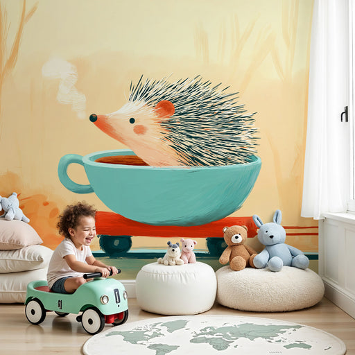 Εμφάνιση όλων των λεπτομερειώνΧαρτί τοίχου παιδικού δωματίου | Αστείος σκαντζόχοιρος στο κύπελλό του