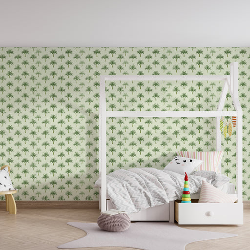 Εμφάνιση όλων των λεπτομερειώνΠαιδικό ταπετσαρία με σχέδιο | Πράσινες φοίνικες σε ανοιχτό φόντο