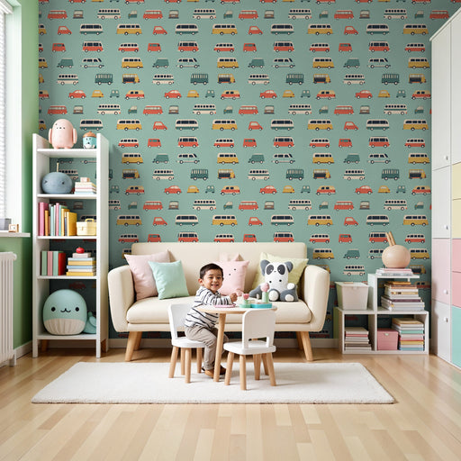 KidsWallΧαρίστε στο παιδικό δωμάτιο μια δυναμική και παιχνιδιάρικη διακόσμηση με αυτό το ταπετσαρία για παιδικό δωμάτιο. Διακοσμημένο με μικρά αυτοκίνητα σ...