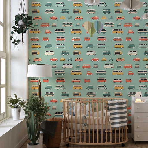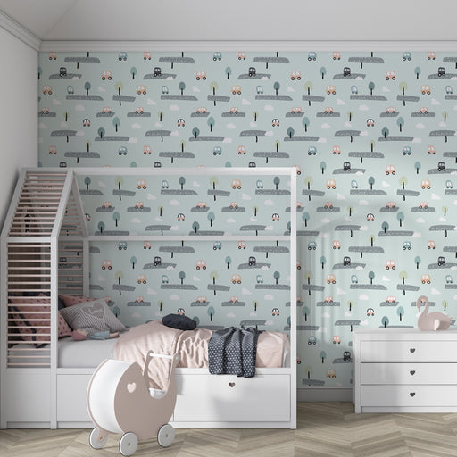 KidsWallΕπαναπροσδιορίστε το δωμάτιο του παιδιού σας σε ένα πραγματικό ταξίδι περιπέτειας με αυτό το χαριτωμένο ταπετσαρία. Διακοσμημένο με πολύχρωμα αυτοκ...