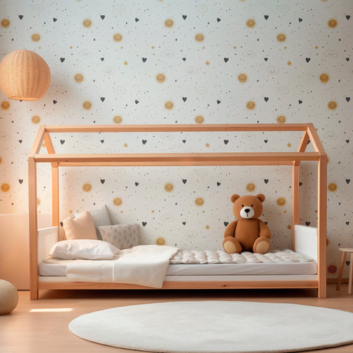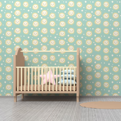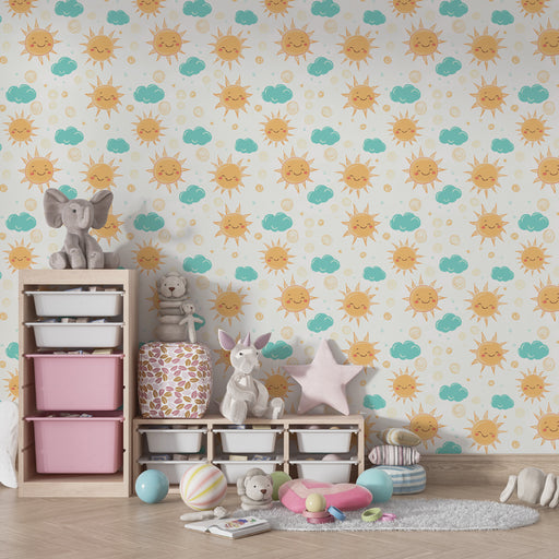 Εμφάνιση όλων των λεπτομερειώνΧαρτί τοίχου παιδικού δωματίου με σχέδια | Μικροί ήλιοι και χαμογελαστά σύννεφα