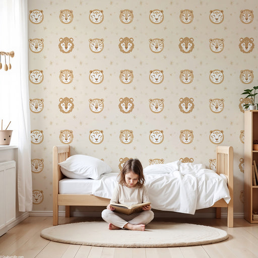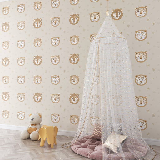 Εμφάνιση όλων των λεπτομερειώνΧαρτί τοιχοποιίας παιδικού δωματίου με μοτίβα | Χαριτωμένα πρόσωπα τίγρης σε απαλό φόντο