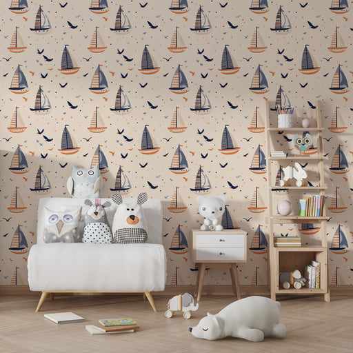 KidsWallΜεταμορφώστε τον κόσμο του παιδιού σας με αυτό το ταπετσαρία θαλάσσης γεμάτο χάρη και περιπέτεια. Σε μια απαλή φόντο, μια πληθώρα πολύχρωμων βαρκών...