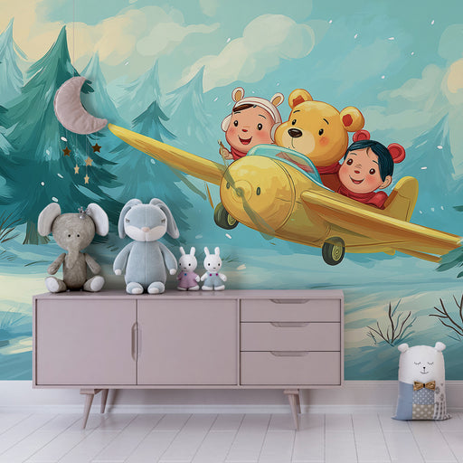 KidsWallΒυθίστε το παιδί σας σε έναν κόσμο περιπέτειας και μαγείας με αυτό το ταπετσαρία δωματίου παιδιού που απεικονίζει μια χαρούμενη εξόρμηση με αεροπλά...
