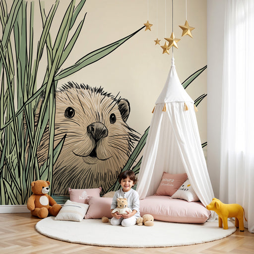 Εμφάνιση όλων των λεπτομερειώνΧαρτί τοιχοποιίας παιδικού δωματίου | Περίεργος κάστορας στην ακρογιαλιά
