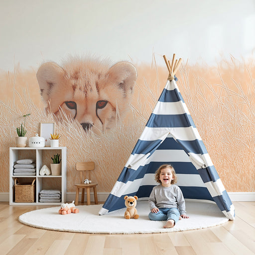 Εμφάνιση όλων των λεπτομερειώνΧαρτί τοίχου παιδικού δωματίου | Μικρός λεοπάρδαλη κρυμμένος στη σαβάνα