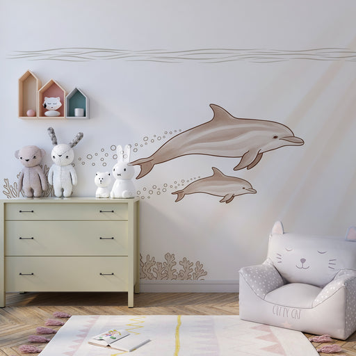Χαρτί τοίχου παιδικού δωματίου | Δελφίνια που κολυμπούν στον ωκεανό