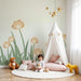Τα πράσινα χόρτα που περιβάλλουν τα λουλούδια προσθέτουν μια αίσθηση φυσικότητας, δίνοντας μια αίσθηση φρεσκάδας και ελαφρότητας. Αυτή η μινιμαλιστική και κομψή διακόσμηση είναι ιδανική για να ενθαρρύνει τη φαντασία του παιδιού σας δημιουργώντας έναν απαλό και φιλόξενο χώρο.