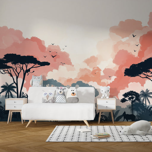Εμφάνιση όλων των λεπτομερειώνΧαρτί τοίχου παιδικού δωματίου | Σαφάρι στο ηλιοβασίλεμα