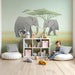 Χαρτί τοιχοποιίας παιδικού δωματίου | Κομψοί ελέφαντες και αλογονούς στη σαβάνα