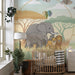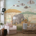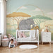 Χαρτί τοίχου παιδικού δωματίου | Ελέφαντες και λιοντάρια στη σαβάνα σε απαλά χρώματα