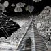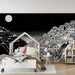 Χαρτί τοίχου παιδικού δωματίου | Νυχτερινό χωριό σε μαύρο και λευκό με λαμπερή σελήνη